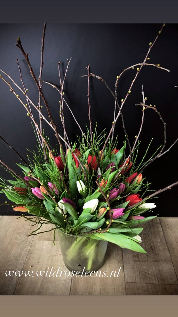 tulpen boeket gemengd met bloesemtakken